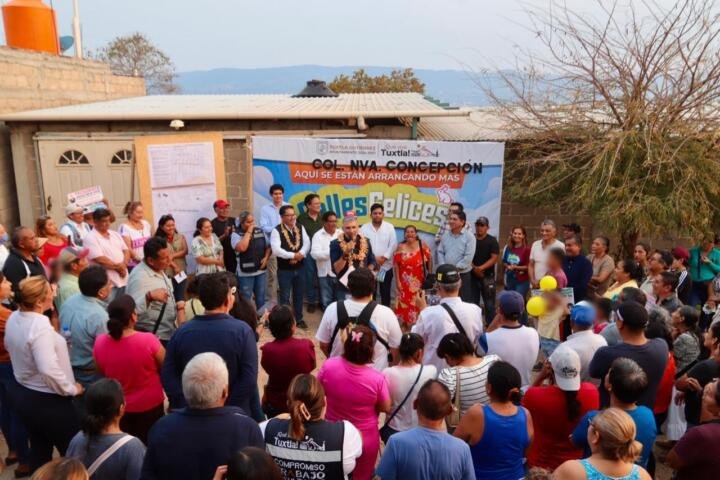Con una emoción desbordante las y los habitantes recibieron al presidente Angel Torres quien llegó a la colonia Nueva Concepción y dio el banderazo de inicio a los trabajos de pavimentación de la Avenida Nueva Concepción, vialidad principal del lugar, como parte del Programa Calles Felices.