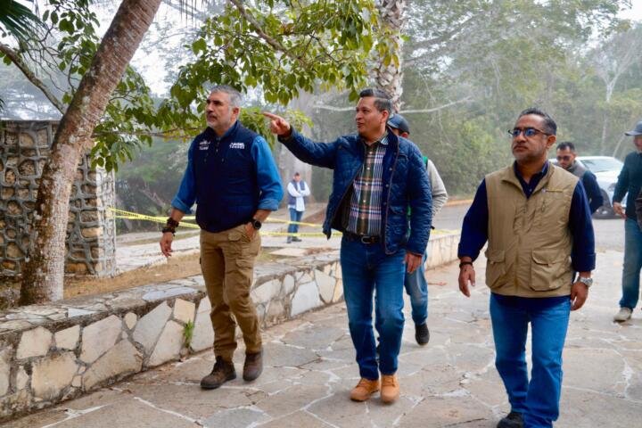 El presidente municipal Angel Torres dio seguimiento a los trabajos de rehabilitación que se realizan en el Mirador Los Chiapas, ubicado en el emblemático Cañón del Sumidero, como parte de las acciones para dignificar y fortalecer uno de los espacios más representativos de la capital.