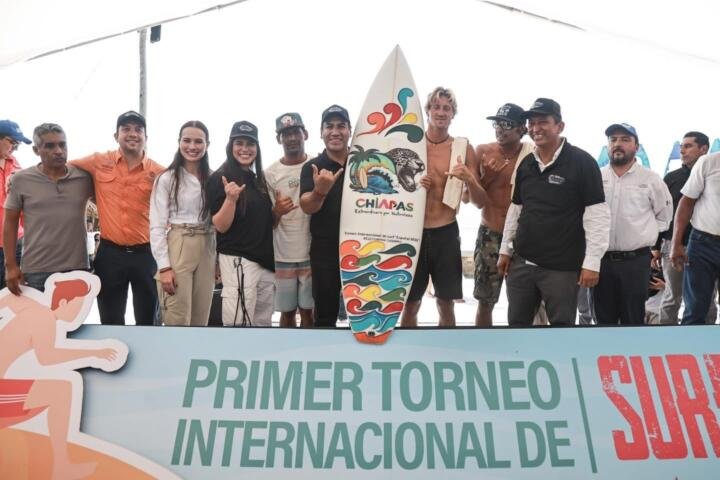 El gobernador Eduardo Ramírez Aguilar inauguró el Primer Torneo Internacional de Surf 2025 en la playa El Zapotal, en el municipio de Pijijiapan, competencia que reúne a atletas de México, Costa Rica, Panamá, Argentina, Estados Unidos, Israel y Sudáfrica, y que contempla una bolsa de dos millones de pesos en premios para las y los ganadores.