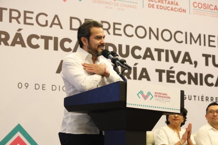 “Hoy iniciamos el primer día de este segundo año de actividades reconociendo la vocación del magisterio. Esa vocación que estamos llamados a fortalecer. Las maestras y maestros reconocen lo alcanzado durante el primer año de la Nueva ERA y refrendan su compromiso para los años que vienen”, destacó durante la entrega de reconocimientos a docentes beneficiados en los procesos del Sistema para la Carrera de las Maestras y Maestros en Chiapas, Ciclo Escolar 2025-2026.