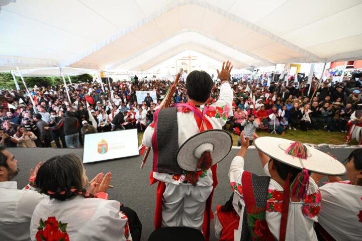 Durante el encuentro, Ramírez Aguilar también entregó becas Rosario Castellanos, distribuyó kits invernales a personas en condiciones de vulnerabilidad, anunció acciones de infraestructura educativa y de agua potable, y recorrió el aula móvil de capacitación para el empleo, así como las unidades de servicios médicos.