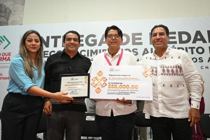 Por su parte, el director general de la Agencia Digital Tecnológica del Estado de Chiapas, Jovani Salazar Ruiz, explicó que, bajo los principios de transparencia e imparcialidad, el Comité Evaluador determinó a las y los acreedores de la Medalla al Mérito Estatal de Investigación 2025, así como a quienes recibieron estímulos económicos del Sistema Estatal de Investigación. “Al premiar a la investigación estamos garantizando un Chiapas con soberanía tecnológica y justicia social”, agregó.